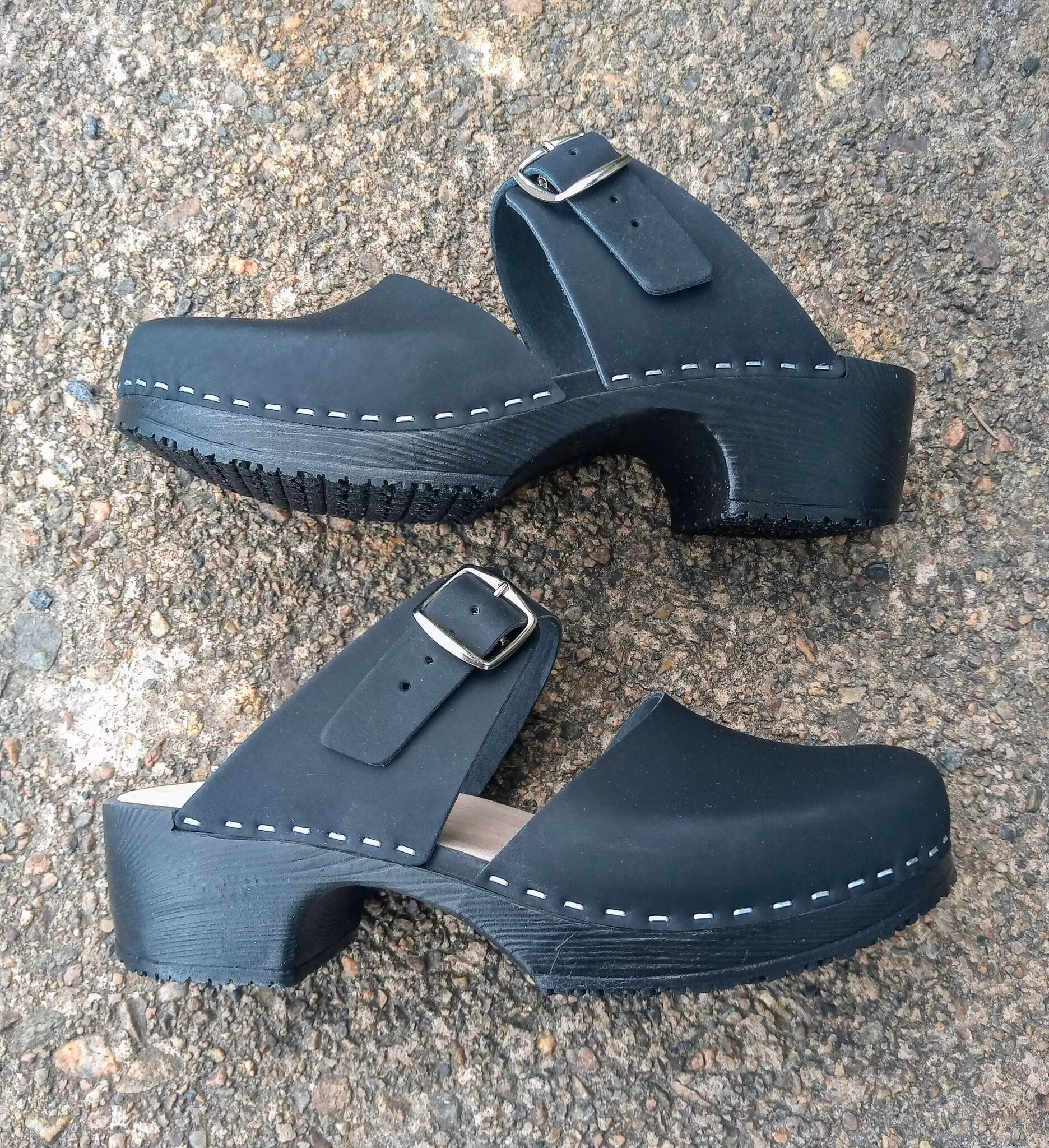 Mjuktoffel med gummisula och faneèrinlägg närmast foten.