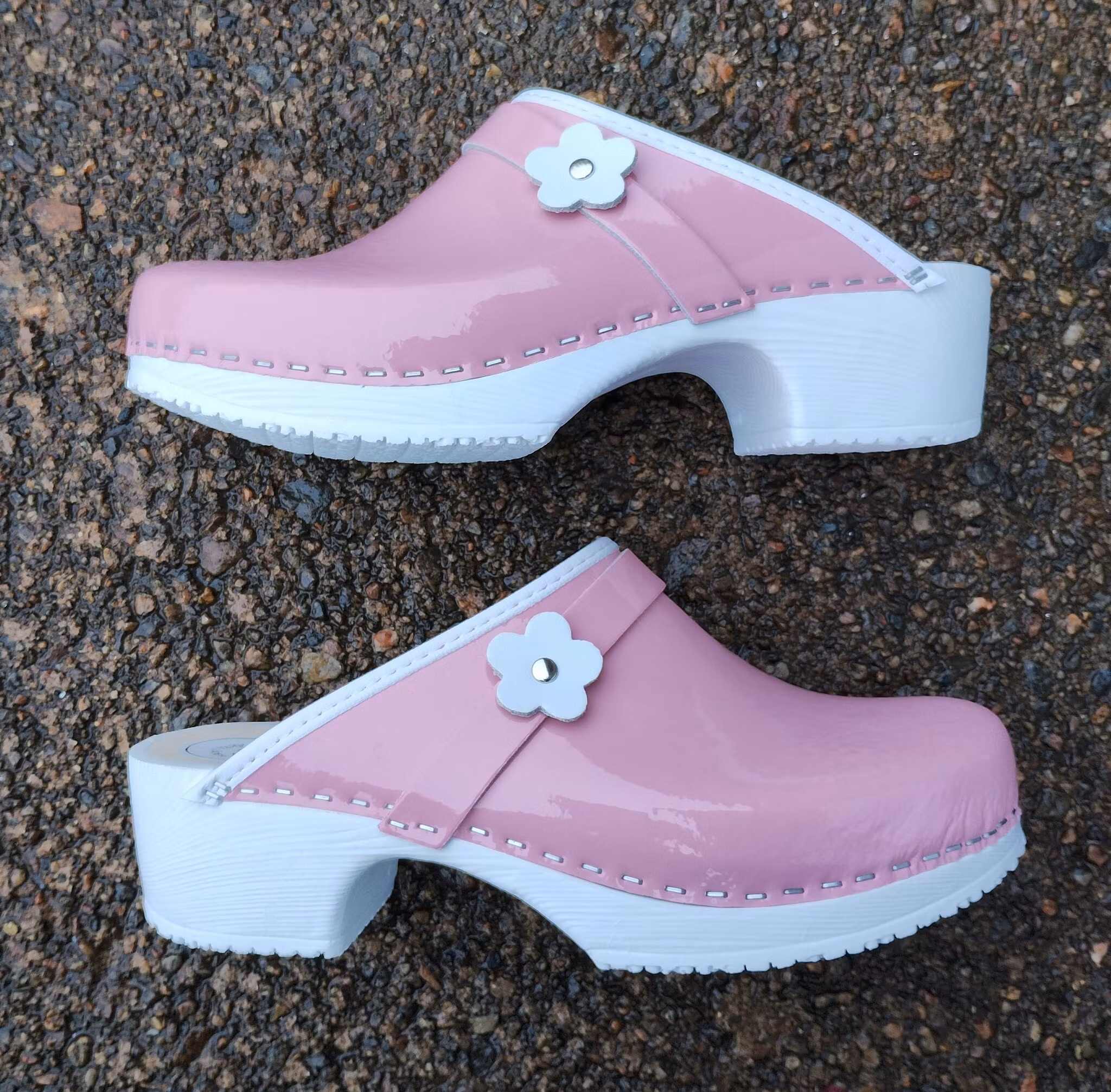Ulla, mjuk botten i rosa lack med rem och blomma